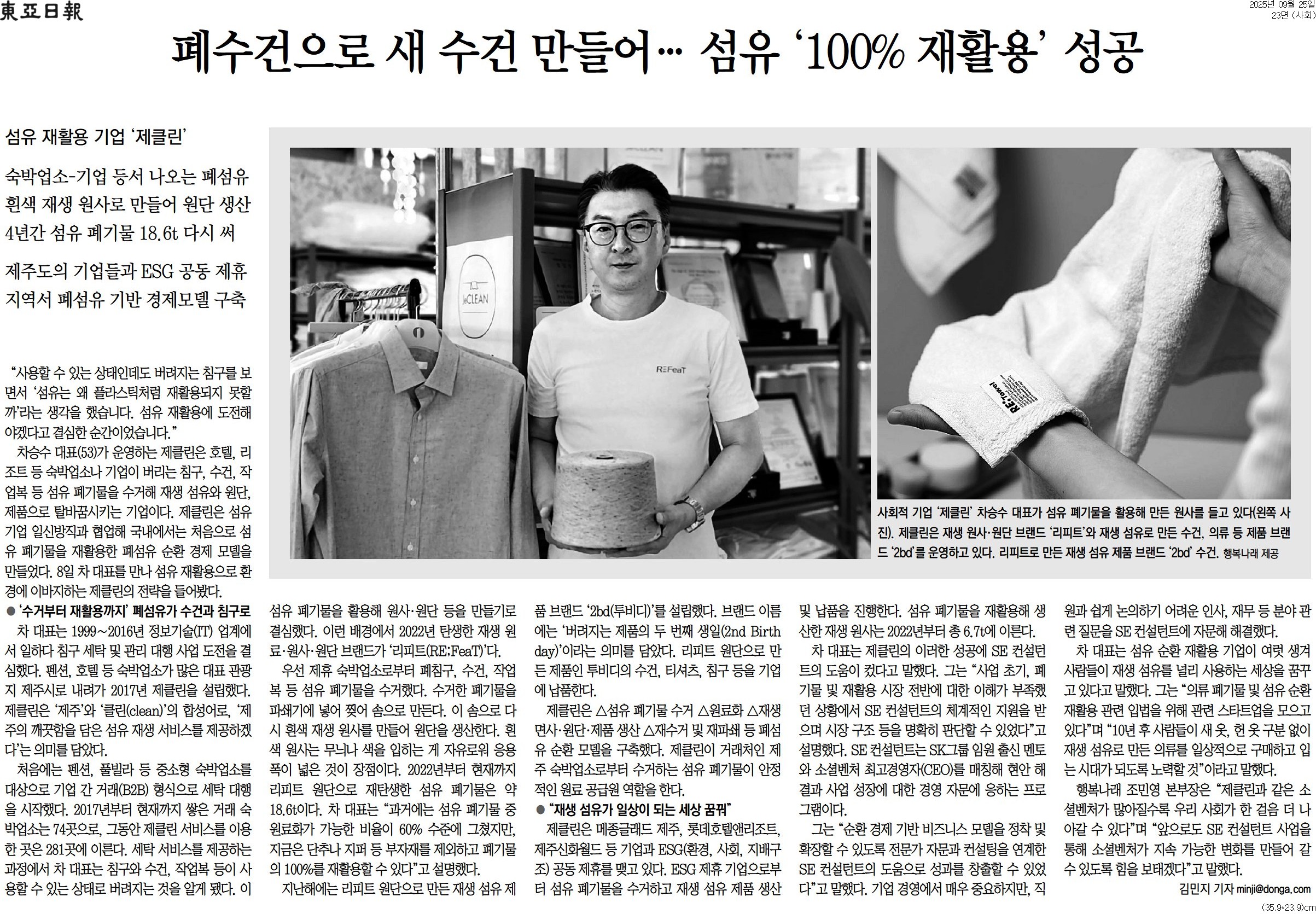 [동아일보 행복나눔] 폐수건으로 새 수건 만들어… 섬유 ‘100% 재활용’ 성공