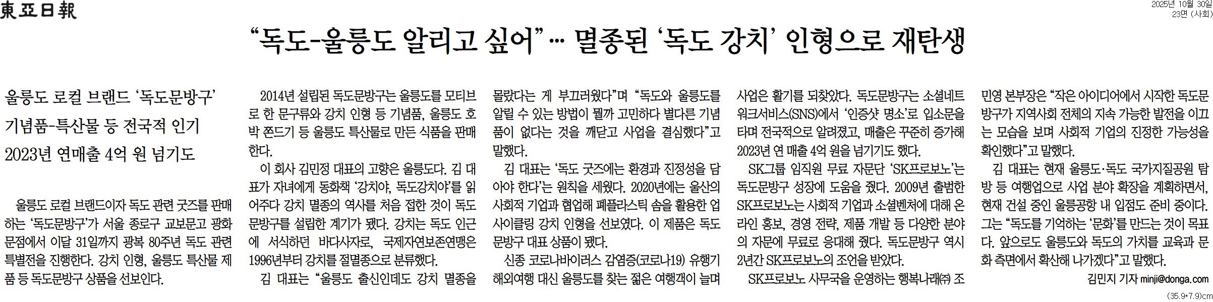 [동아일보 행복나눔] “독도-울릉도 알리고 싶어”… 멸종된 ‘독도 강치’ 인형으로 재탄생