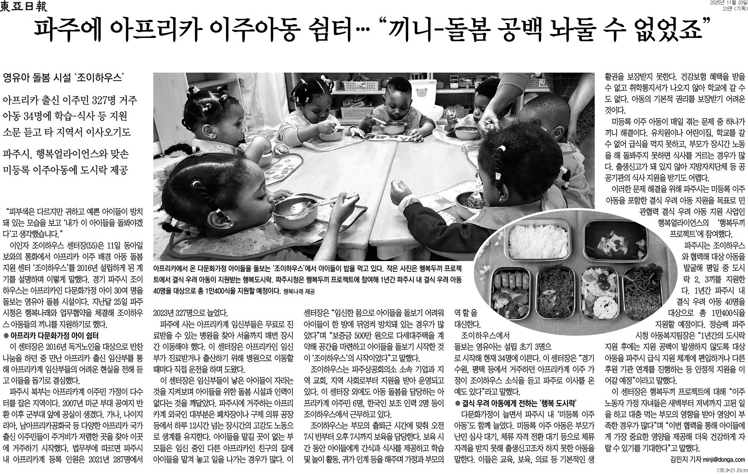 [동아일보 행복나눔] 파주에 아프리카 이주아동 쉼터… “끼니-돌봄 공백 놔둘 수 없었죠”